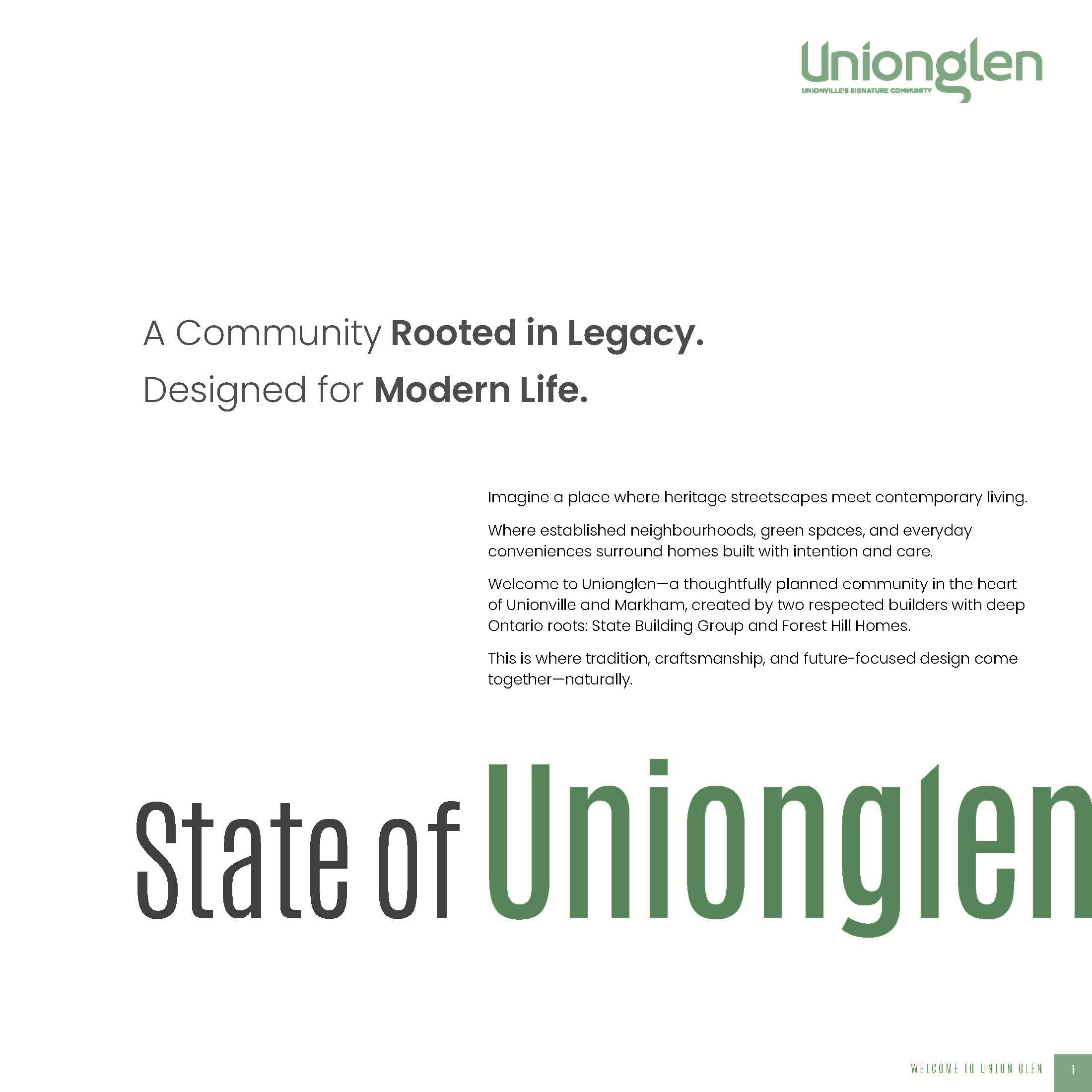 UnionGlen is a thoughtfully master-planned community developed by State Building Group and Forest Hill Homes, located in the heart of Markham, near the established and highly desirable Unionville area.