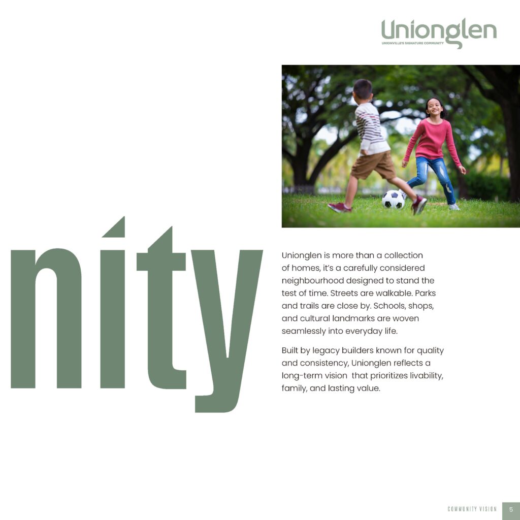 From a planning perspective, UnionGlen is more than just a collection of homes; instead, it is a carefully curated community built for long-term livability. The neighbourhood features walkable streets, integrated parks and trails, and future schools, all seamlessly connected to support daily life.