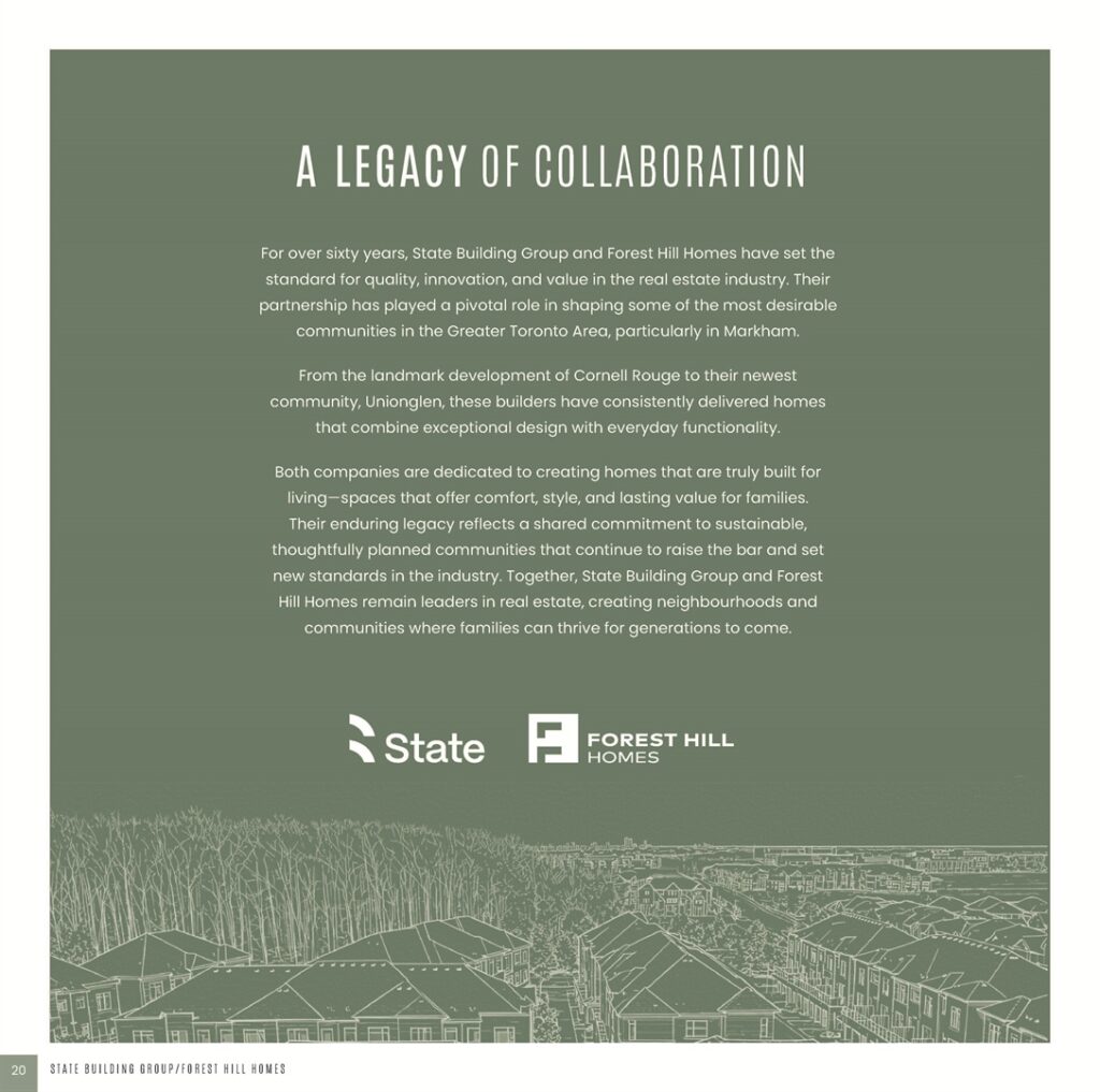 Overall, UnionGlen by State Building Group and Forest Hill Homes represents a strong combination of prime location, thoughtful community planning, modern home design, and trusted developer experience. Therefore, it is an ideal choice for families and investors seeking long-term value in the Markham real estate market.